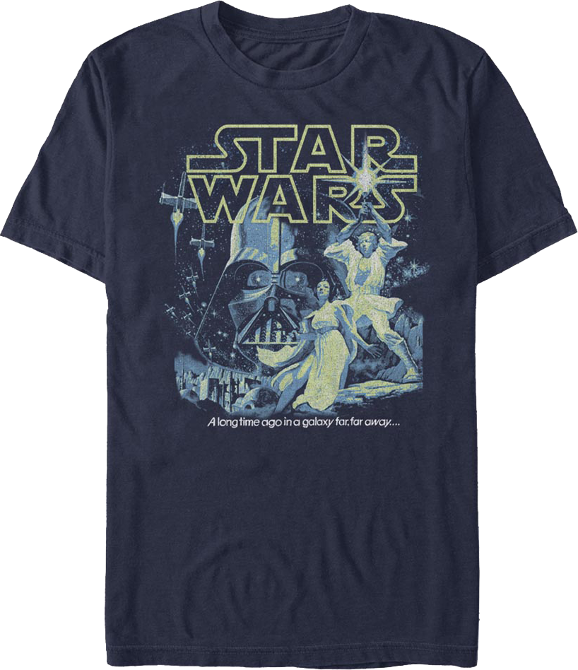 For any fan of the movie that started the most successful franchise film of all time, this Distressed Episode IV Movie Poster Star Wars T-Shirt is a must have!