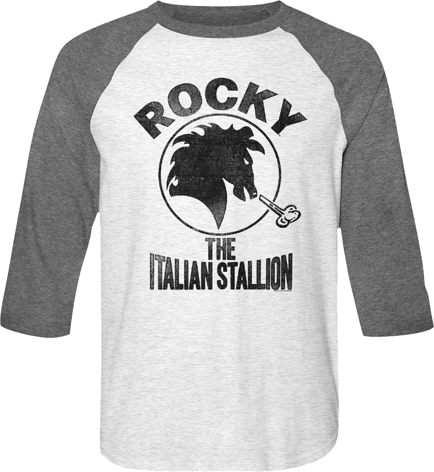 For any fan of the classic franchise starring Sylvester Stallone, this Distressed Italian Stallion Logo Rocky Raglan Baseball Shirt is a must have!