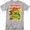 Raphael is a straight-up brawler. He has very little patience for things like stealth, hiding in shadows, or keeping his voice down. While he's fiercely loyal to his brothers, he's also often the one giving them a hard time. Raph's favorite weapons are his twin sai. Raphael is instantly recognizable with his red mask. Everyone will know you are a fan when you wear this Distressed Raphael Photo Teenage Mutant Ninja Turtles T-Shirt!
