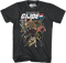 This shirt shows Duke, Roadblock, Bazooka, Snake Eyes with Timber, Rock 'n Roll, and Scarlett. In each episode of the classic animated series GI Joe, the characters that appear on this t-shirt were given the mission to protect the world from the evil organization known as Cobra. Audiences watched each action-packed episode knowing that these characters would always put up a good fight against Cobra. And knowing was half the battle!