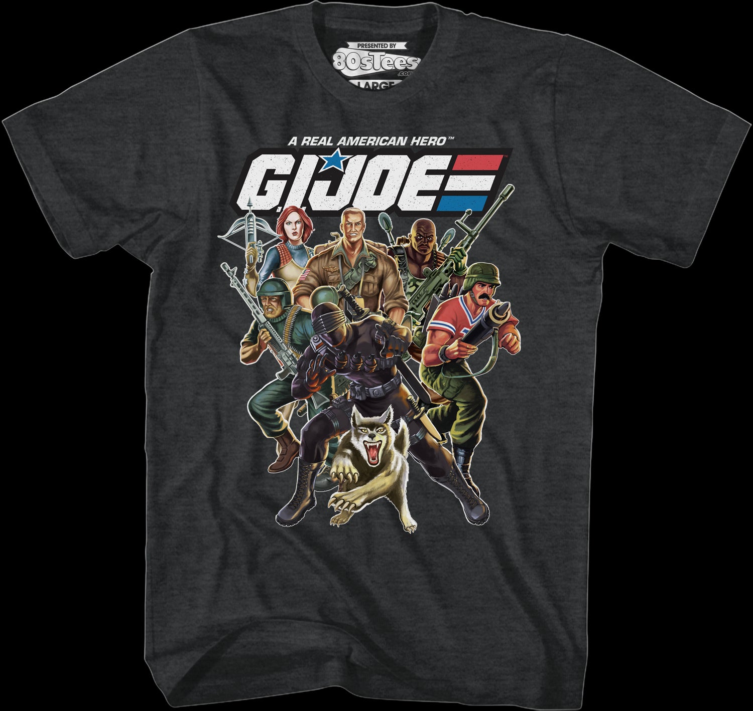 Everyone will immediately know that you are a fan of the animated series when you wear this 80sTees.com exclusive Distressed Real American Hero GI Joe t-shirt!