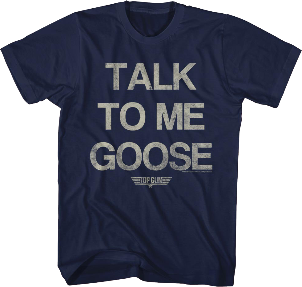 For any fan of the unforgettable 1986 movie starring Tom Cruise, this Distressed Talk To Me Goose Top Gun T-Shirt is a must have!