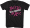 The front of this Twisted Sister t-shirt features the title of the band's 1984 album Stay Hungry. The back of the shirt shows the band's bones logo and the title of their hit song "We're Not Gonna Take It".