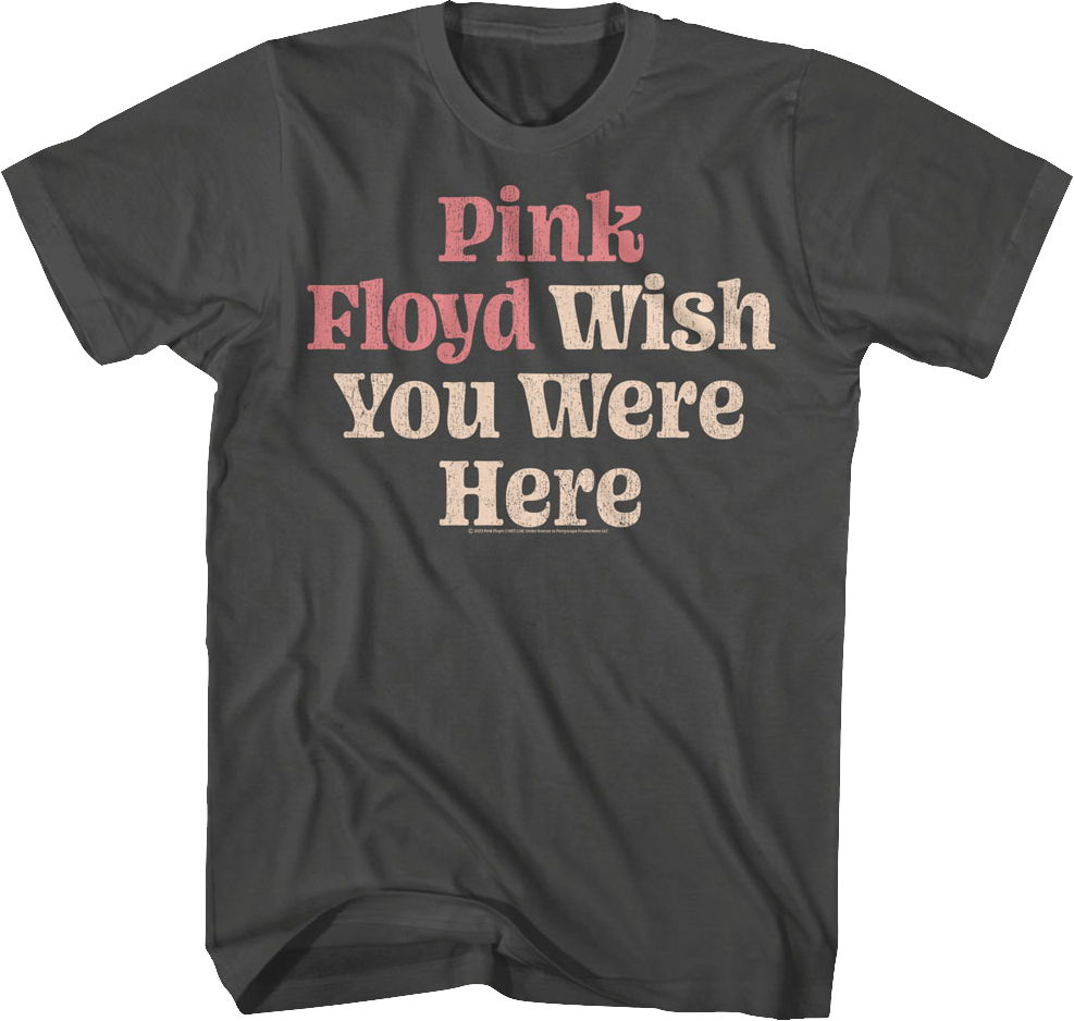 This Pink Floyd t-shirt features the title of the band's ninth studio album Wish You Were Here.