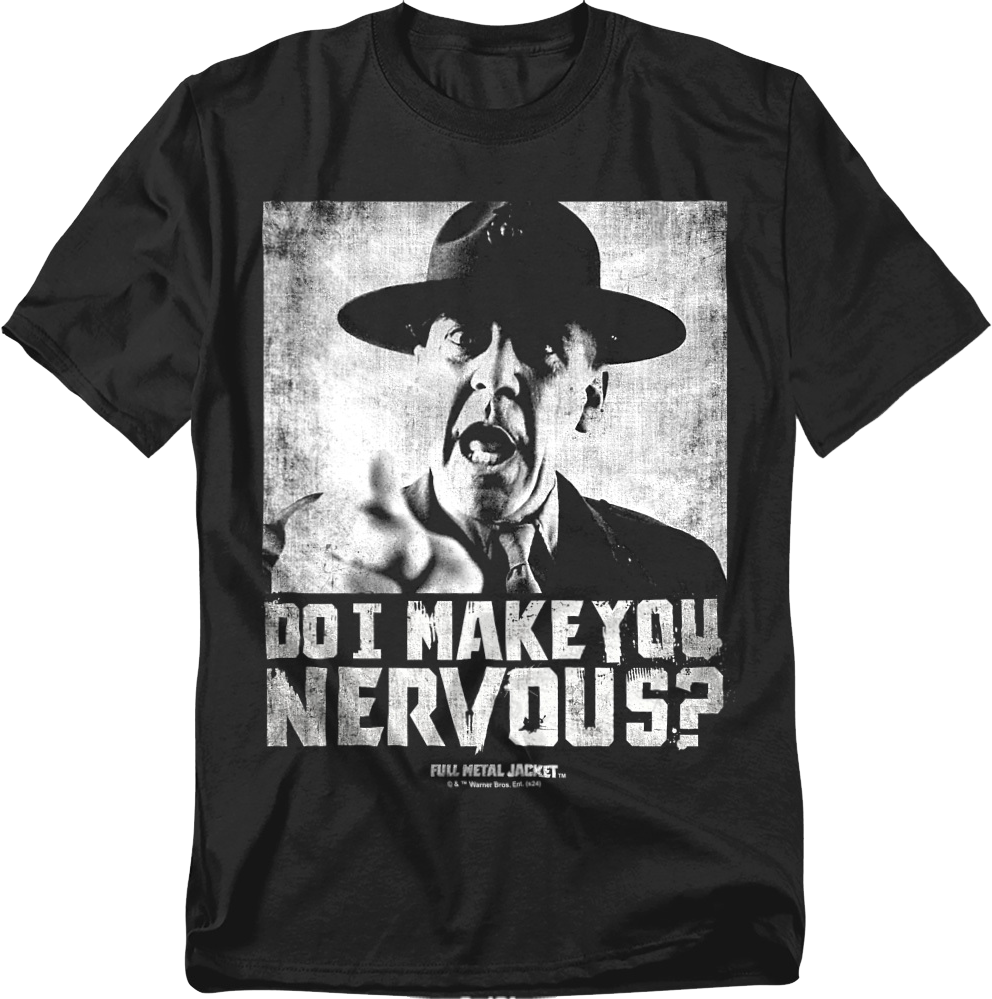 This Full Metal Jacket t-shirt features an image of Gunnery Sergeant Hartman. The shirt reads Do I Make You Nervous?