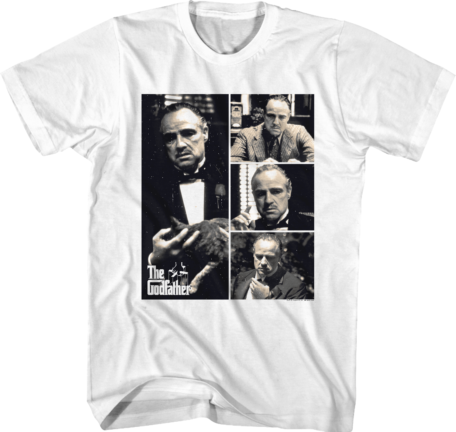 The Godfather has appeared on countless lists as one of the greatest movies of all time. Now, you can show that you are a fan with this Don Corleone Collage Godfather T-Shirt!