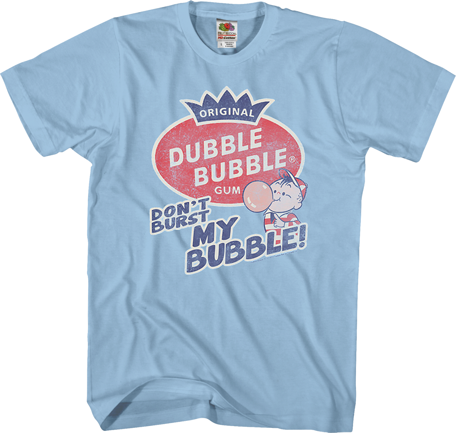 Kids of the '80s who remember the giant bucket of pink gum will love this Don't Burst Dubble Bubble T-Shirt.
