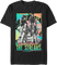 This Ghostbusters t-shirt features a black and white group picture of Ray Stantz, Peter Venkman, Winston Zeddemore, and Egon Spengler in front of a background that is highlighted in neon colors. The shirt reads Don't Cross The Streams.