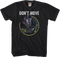This Jurassic Park t-shirt shows a Tyrannosaurus Rex leaning down to face Dr. Alan Grant. The shirt reads Don't Move.
