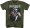 This Rambo t-shirt features an image of Sylvester Stallone as John Rambo in the 1982 movie First Blood. The shirt reads Don't Push It Or I'll Give You A War You Wouldn't Believe.