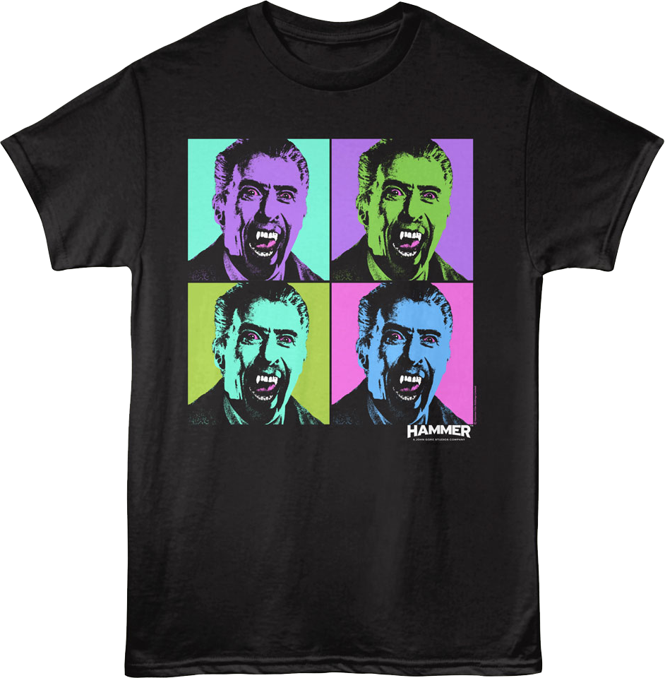 Horror Of Dracula was the first Hammer Dracula film to be in color, which allowed for more vivid depictions of blood and Gothic settings. Everyone will know you are a fan of the 1958 classic when you wear this Dracula Pop Art Hammer Films T-Shirt!