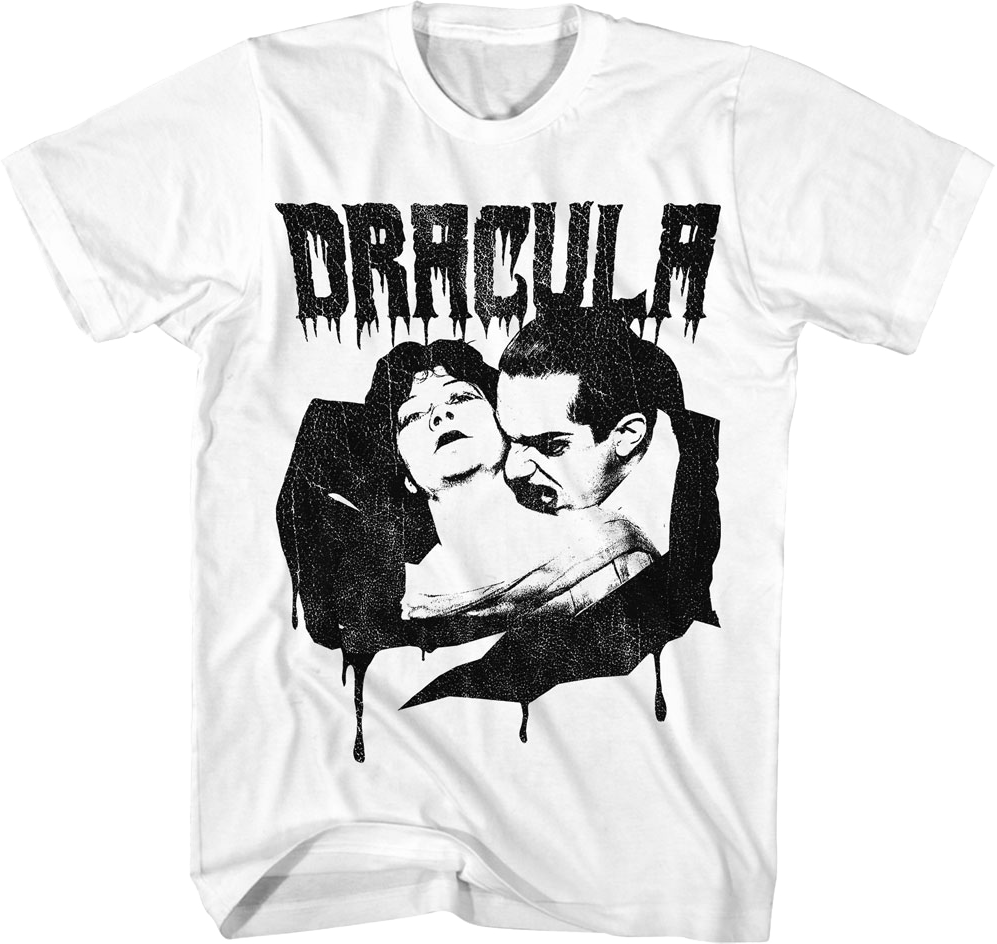 Let everyone know you are a fan of the 1931 horror classic when you wear this Dracula Vampire's Bite Bela Lugosi T-Shirt!