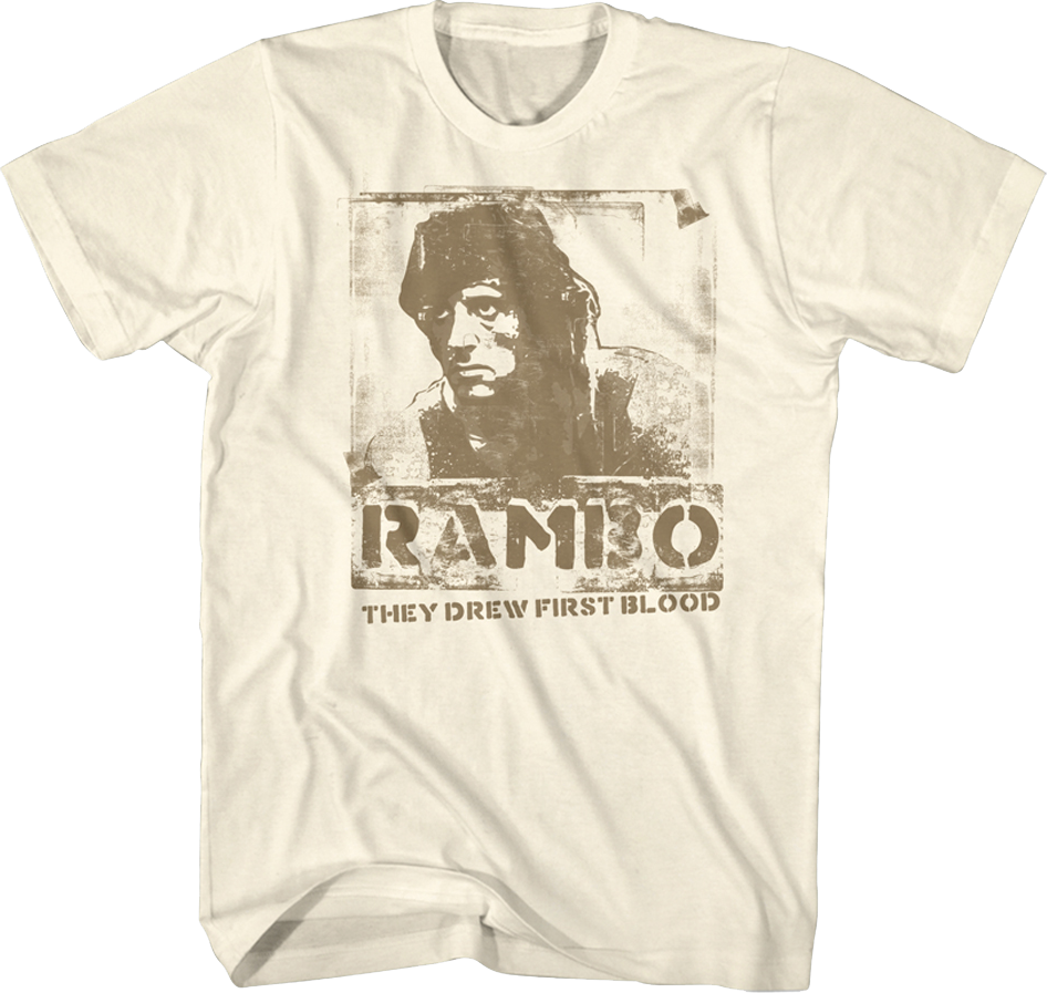 Now you can show that you are a fan of the man who never fought a battle he couldn't win with this Drew First Blood Rambo T-Shirt!