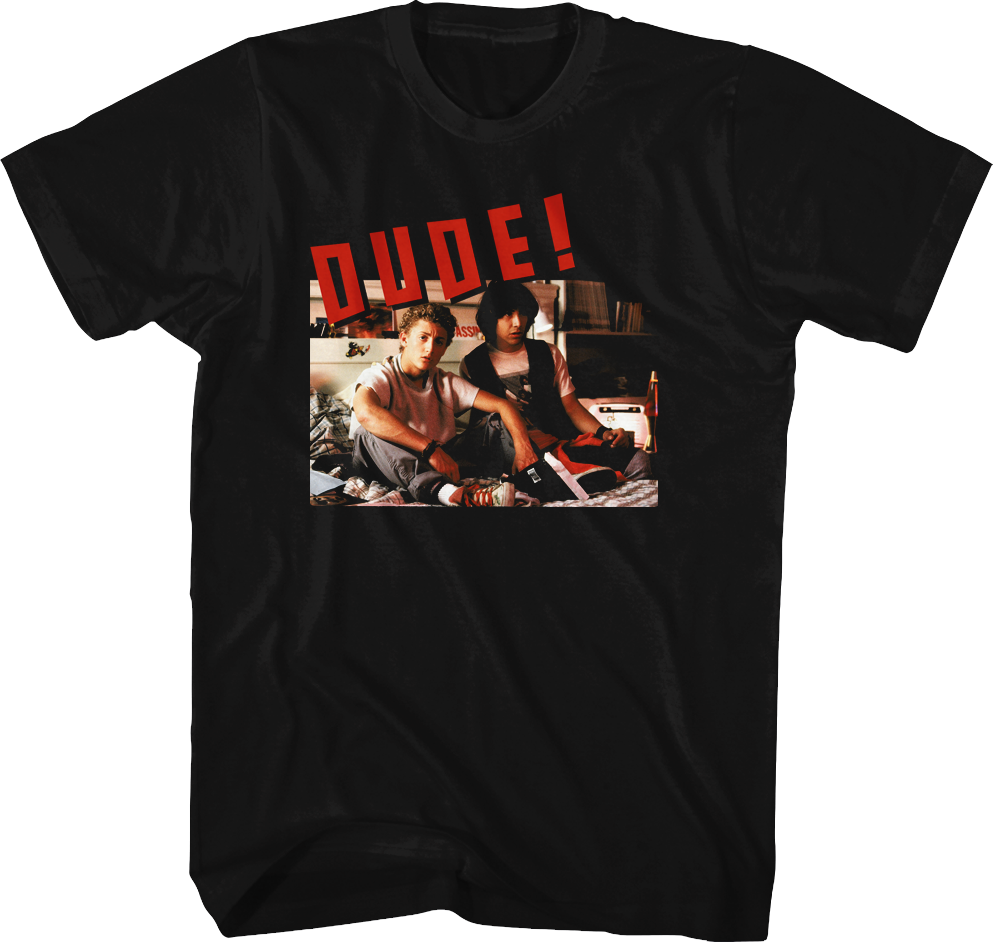 This Dude Bill and Ted shirt features the founders of Wyld Stallyns and one of their main catchphrases, "Dude!"