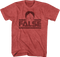 As the top salesman at Dunder Mifflin and a volunteer sheriff's deputy, Dwight Schrute sees himself as an authority figure. Dwight enjoys telling people when they are wrong by sternly saying "false". One of Dwight's favorite television series is Battlestar Galactica. This Office t-shirt features an outline of Dwight Schrute's head, and the shirt reads FALSE in the style of the Battlestar Galactica logo.