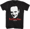 This Silence of the Lambs t-shirt features a close-up image of Hannibal Lecter's face. The shirt reads Eat. Prey. Love.