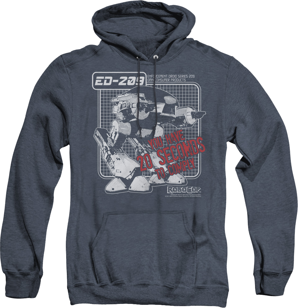 For any fan of Robocop and Enforcement Droid Series 209, this ED-209 You Have 20 Seconds To Comply Robocop Hoodie is a must have!