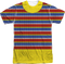 Since the beginning of the popular series Sesame Street, Ernie has woken up at 123 Sesame Street and put on the same striped shirt. Now, you can dress just like Bert's best friend with this Ernie Sublimation Costume t-shirt. This orange, yellow, blue and white striped sublimation t-shirt is designed to look just like Ernie's knitted sweatshirt, complete with the yellow collar and knit ribbing. The design is printed on the front, and everyone will immediately know that you are dressed as the lovable Ernie when you wear this sublimation costume t-shirt. Rubber duckie not included.