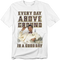 This Scarface t-shirt features an image of Tony Montana. The shirt includes the Mel Bernstein quote Every Day Above Ground Is A Good Day.