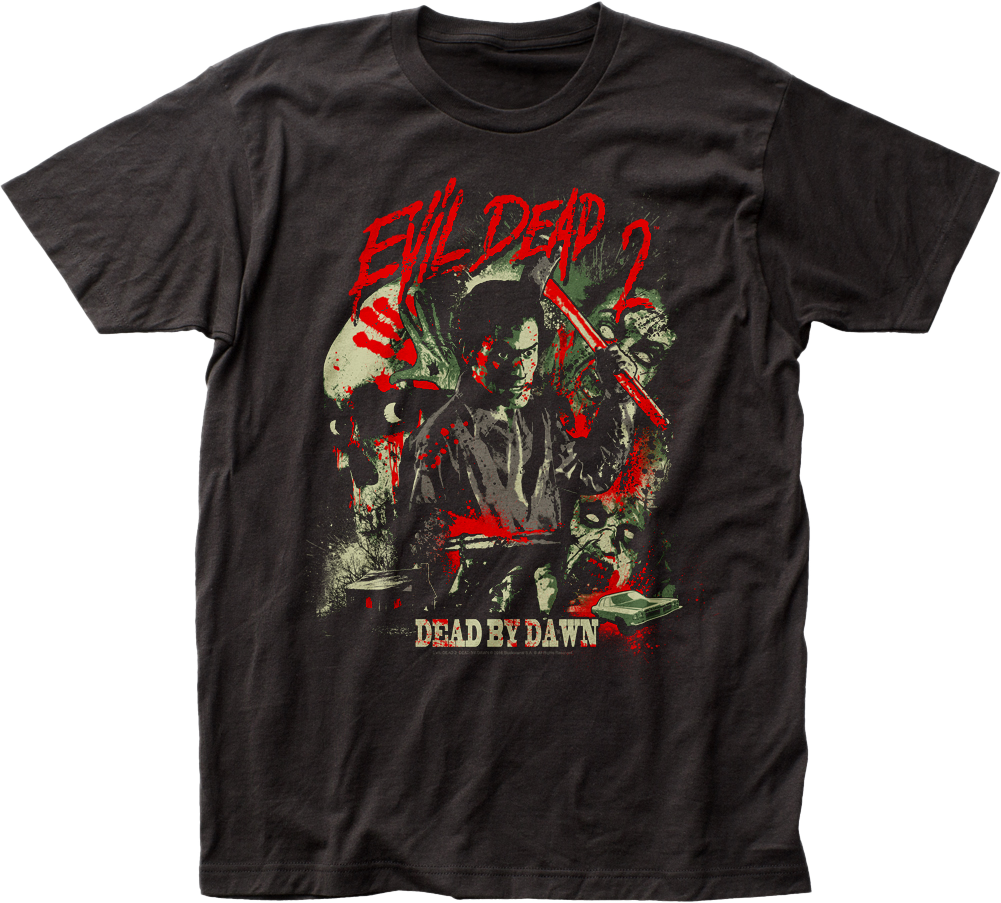 Everyone will immediately know you are a fan of the cult classic Evil Dead 2 when they see you wearing this Dead By Dawn t-shirt.