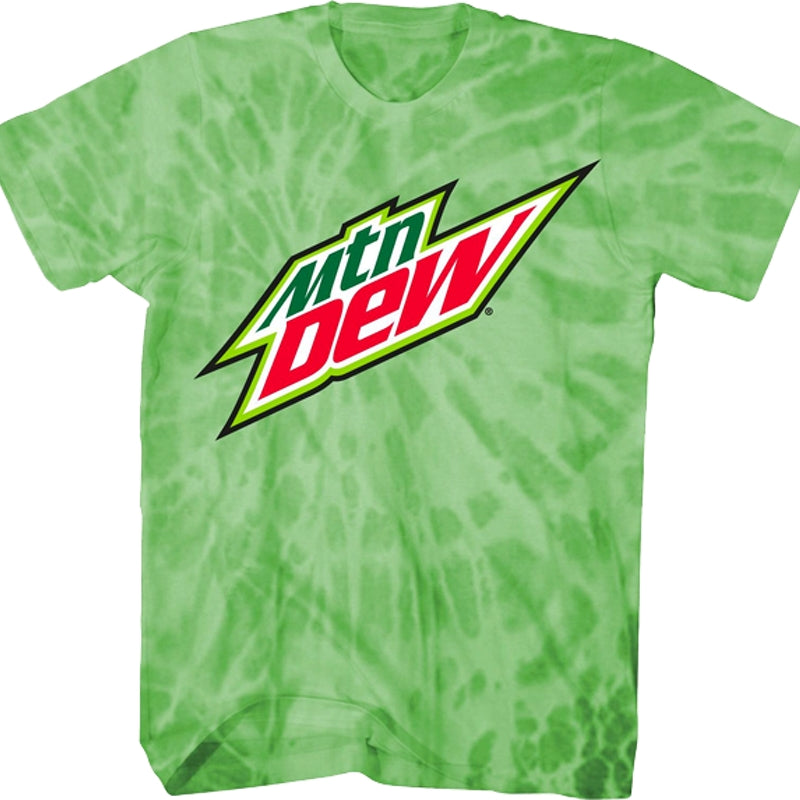 This tie dye Mountain Dew t-shirt features the popular soft drink's logo that was used from 2009-2017.