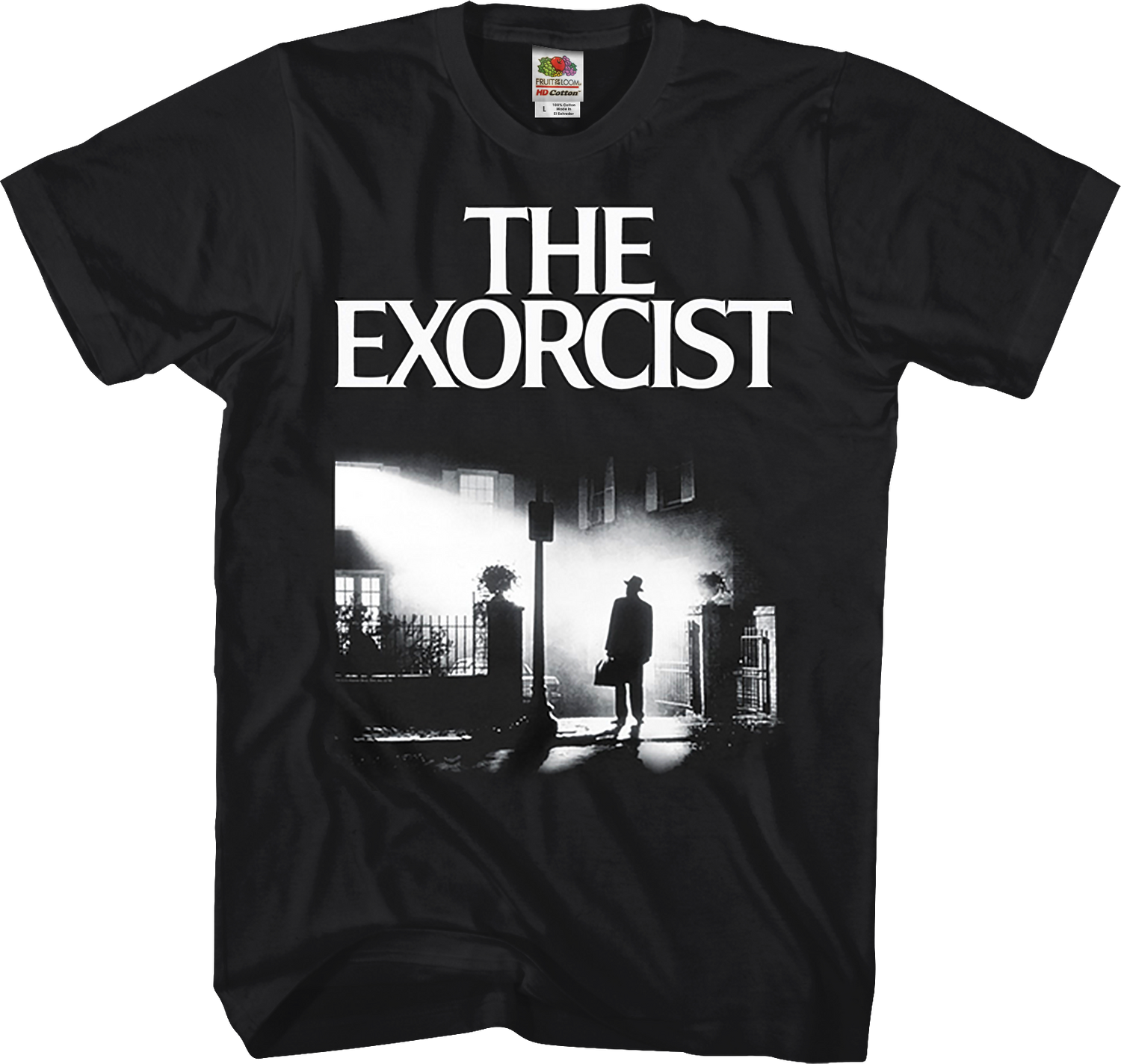 This Exorcist t-shirt features the poster artwork for the scariest movie of all time. The artwork shows Father Merrin staring at the bedroom window of the possessed Regan. With shocking and graphic imagery, The Exorcist has become one of the most iconic horror movies ever released. Now, you can show that you are a fan with this unmistakable Exorcist Poster t-shirt. You'll be turning heads each time you wear this Exorcist Poster t-shirt!