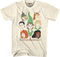 This shirt shows Bobby the Barbarian, Eric the Cavalier, Shiela the Thief, Presto the Magician, Uni, Hank the Ranger, and Diana the Acroboat. When Bobby, Eric, Shiela, Presto, Eric and Diana were transported to the realm of Dungeons & Dragons, they met the unicorn Uni and a Dungeon Master. The Dungeon Master gave each character a magical item, and sent them off on great adventures to battle evil villains like Venger, Shadow Demon, and Tiamat.