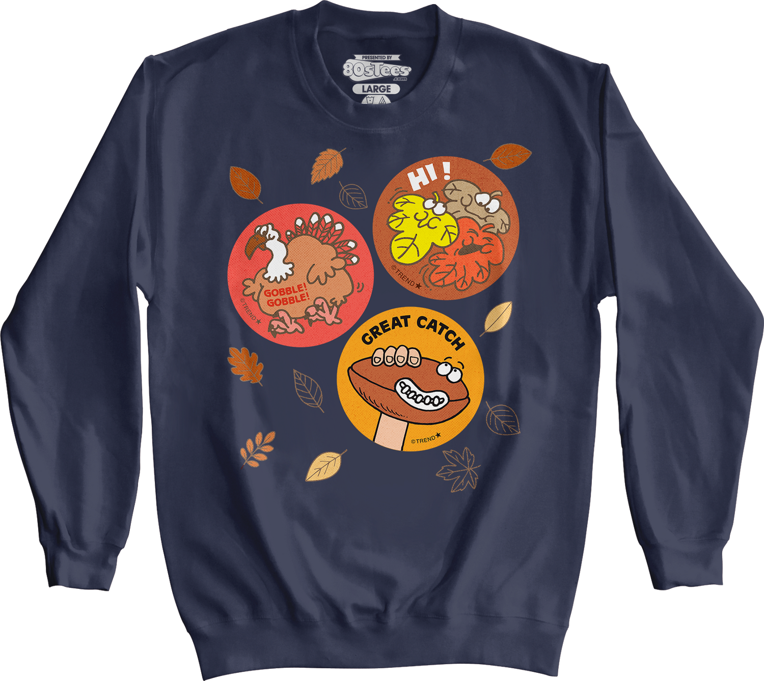 This 80sTees.com exclusive TREND Scratch ‘n Sniff Stinky Stickers® sweatshirt features stickers that perfectly capture the Fall season.