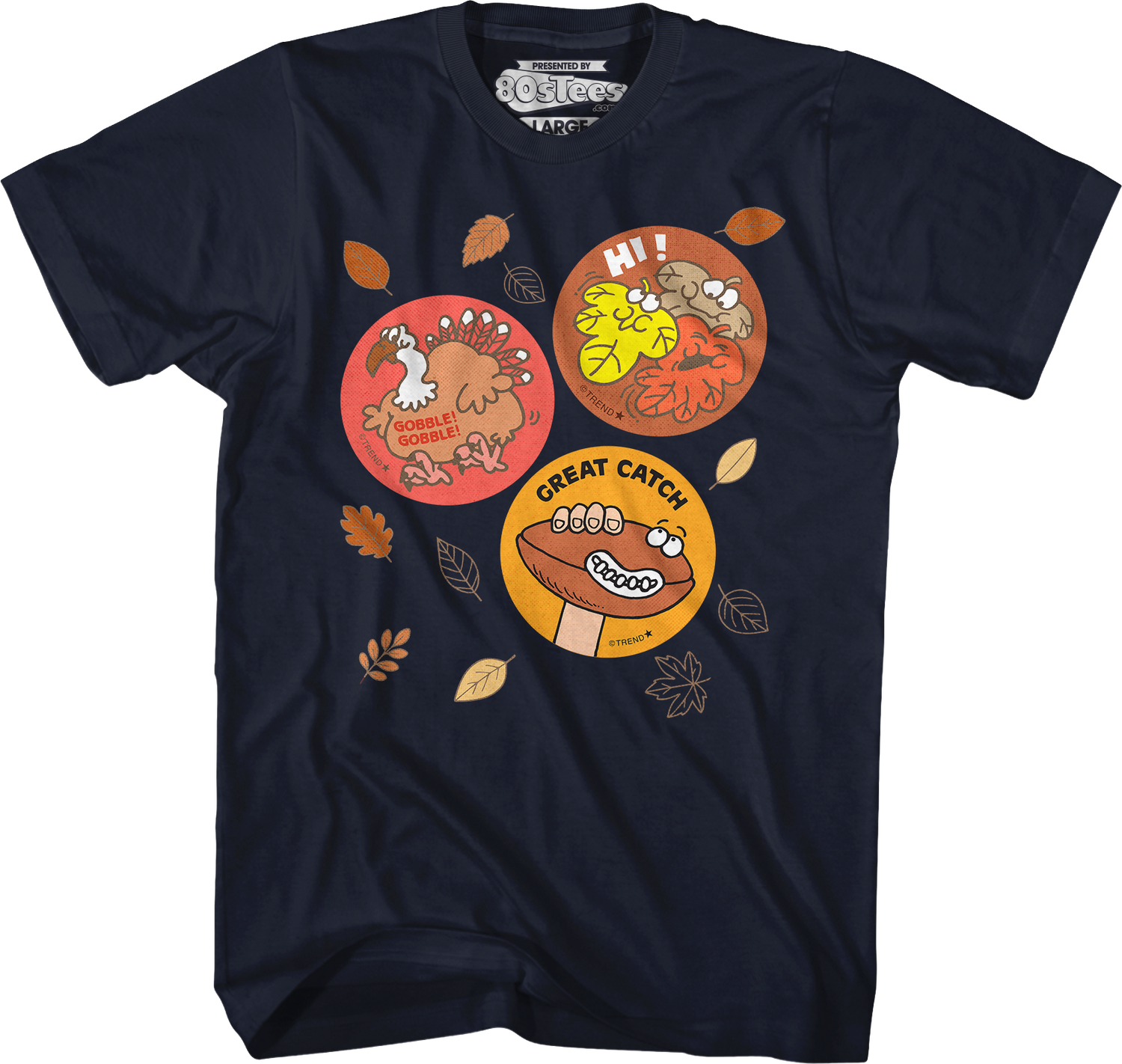 This 80sTees.com exclusive TREND Scratch ‘n Sniff Stinky Stickers® t-shirt features stickers that perfectly capture the Fall season.