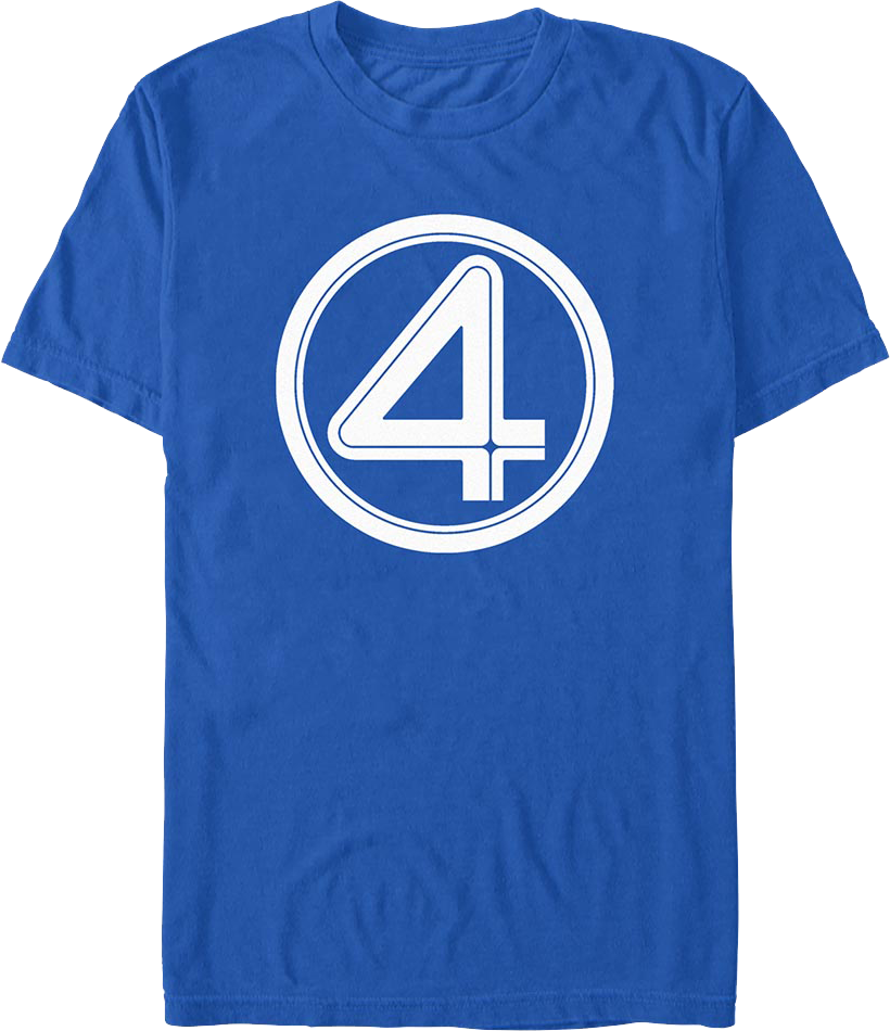 This Fantastic Four t-shirt features the iconic 4 logo that appeared on the matching outfits worn by the legendary superhero team that battled villains like Galactus and Doctor Doom.