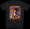 This Jimi Hendrix t-shirt features an image of the legendary musician posing in front of a grid that is expanding throughout the galaxy.