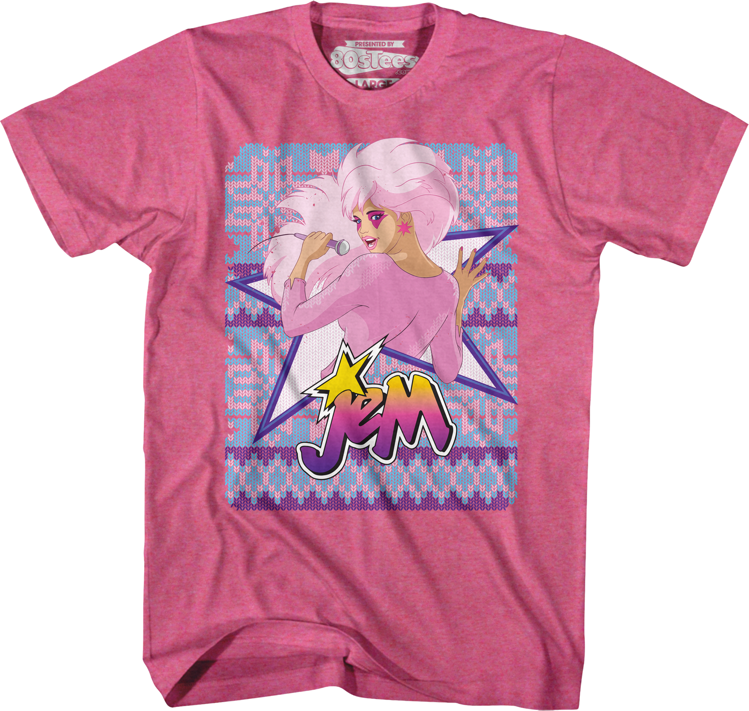 Christmas will be filled with excitement and adventure when you wear this 80sTees.com exclusive Faux Knit Jem Christmas T-Shirt!