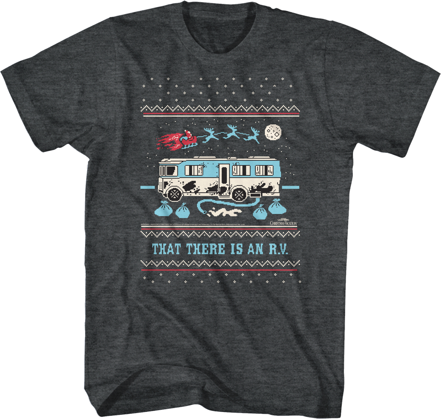 Christmas Vacation is one of the greatest holiday movies of all time. Everyone will know you are a fan of the 1989 classic starring Chevy Chase when you wear this Faux Ugly Knit RV Christmas Vacation T-Shirt!