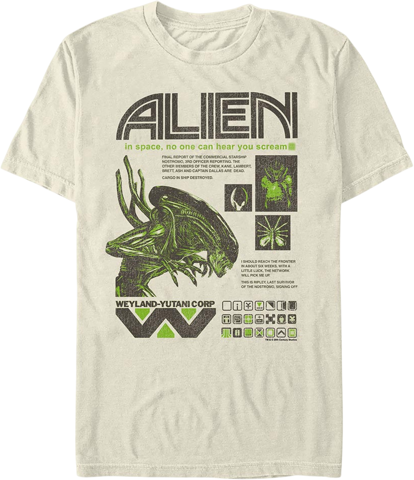 Everyone will know you are a fan of the sci-fi/horror movie starring Sigourney Weaver when you wear this Final Report Alien T-Shirt!