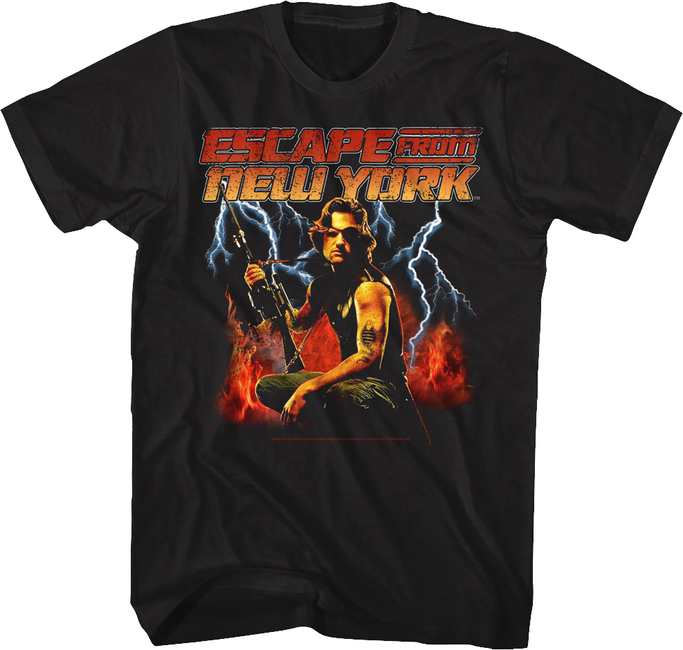 For any fan of John Carpenter's 1981 classic starring Kurt Russell, this Fire And Lightning Escape From New York T-Shirt is a must have!