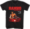 This Rambo t-shirt features an image of John Rambo holding a RPG-7, and the silhouette of a helicopter. The shirt includes the Rambo: First Blood Part II tagline, "No man, no law, no war can stop him."
