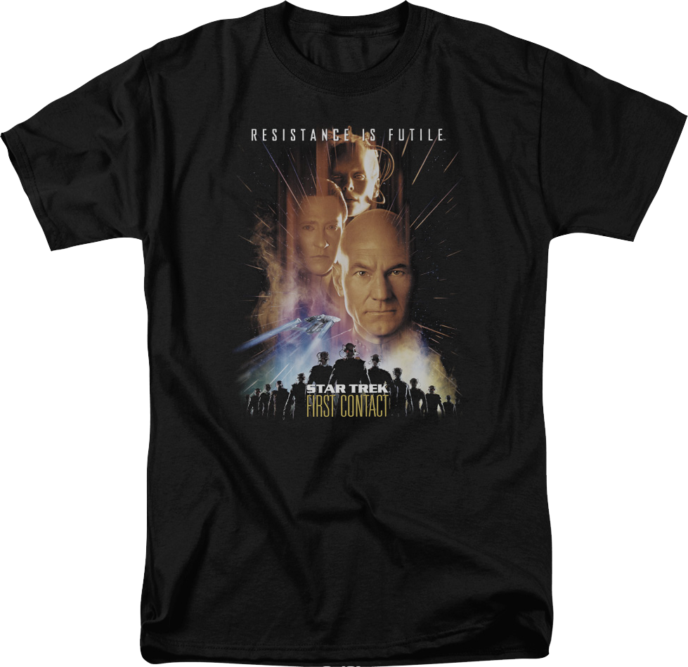 For any fan of the 1996 blockbuster directed by Jonathan Frakes, this First Contact Poster Star Trek T-Shirt is a must have!
