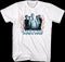 This *NSYNC t-shirt features an image of band members JC Chasez, Lance Bass, Justin Timberlake, Chris Kirkpatrick, and Joey Fatone surrounded by flames.