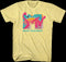 MTV launched on August 1st, 1981 with a logo designed by Manhattan Design's Patty Rogoff and Frank Olinsky under the creative direction of Fred Seibert. The block letter "M" was sketched by Rogoff, and the scribbled word "TV" was spraypainted by Olinksky. This became one of the most popular logos in television history. The logo on this shirt is decorated with a flamingo and a setting sun. This is a logo that would have been seen during episodes of MTV Beach House.