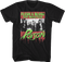 This Poison t-shirt shows band members Rikki Rockett, C. C. DeVille, Bret Michaels and Bobby Dall on a poster that is dripping with blood. This is a promotional poster for the band's Flesh & Blood 1991 World Tour, which was a tour in support of their third album.