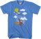 The image on this shirt is inspired by the children's book Curious George Flies a Kite. In the book, George meets a boy named Bill. Bill showed George how to fly a kite, and when George tried to fly the kite, he was taken away with the kite, high up in the sky. The Man in the Yellow Hat had to rescue George in a helicopter. The Margaret Rey book is one of George's greatest adventures!