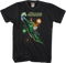 This Flying Green Lantern T-Shirt features an image of the superhero with his Power Ring flying through the galaxy. Hal Jordan debuted as the Green Lantern in 1940 and has remained one of the most popular characters in the pages of DC Comics. Green Lantern is a founding member of the Justice League of America and one of the team's most powerful members. In brightest day, in darkest night, no evil shall escape his sight!