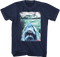 This Jaws t-shirt features a movie poster for Steven Spielberg's classic that includes folded crease lines.