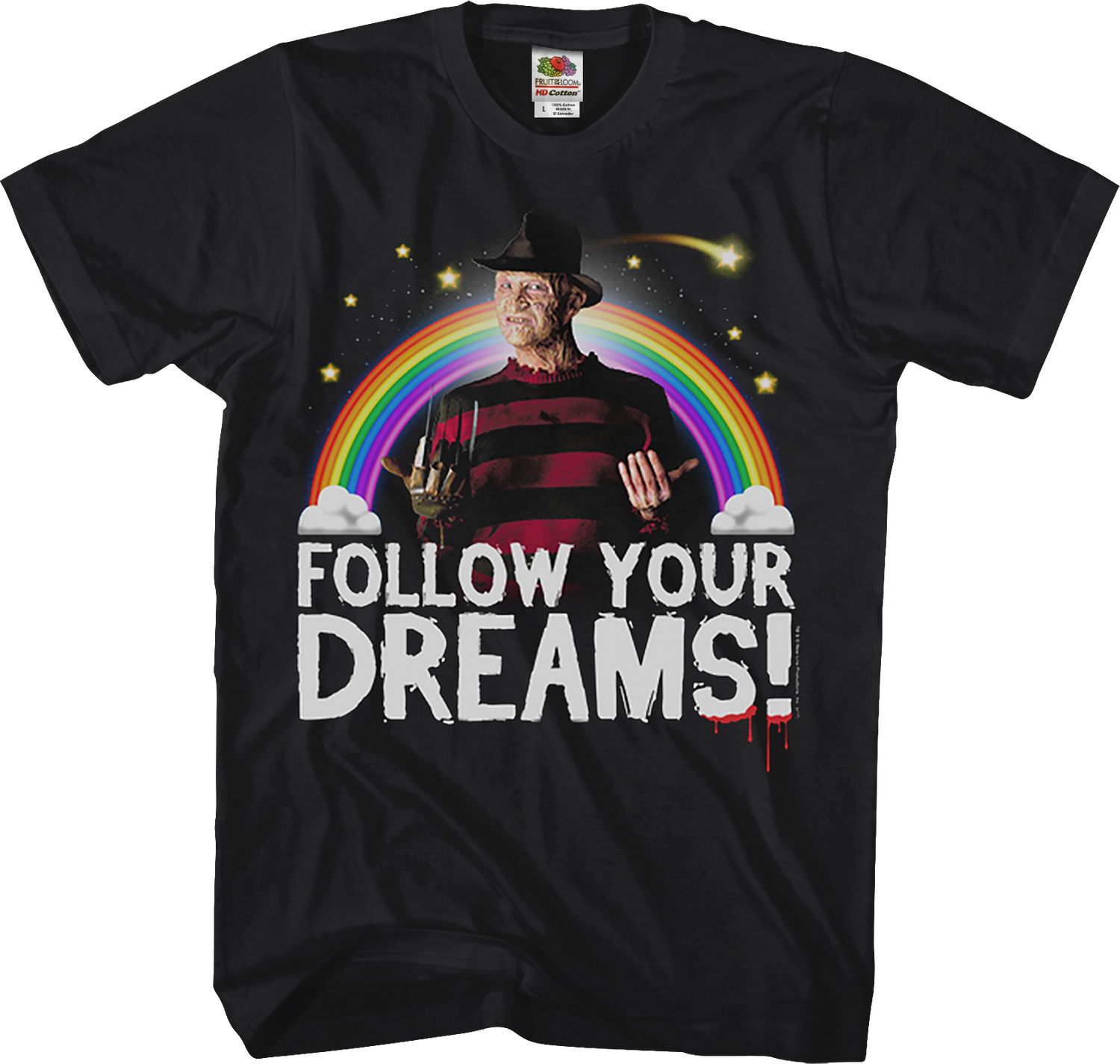 For any fan of Freddy Krueger, this Follow Your Dreams Nightmare On Elm Street t-shirt is a must have!