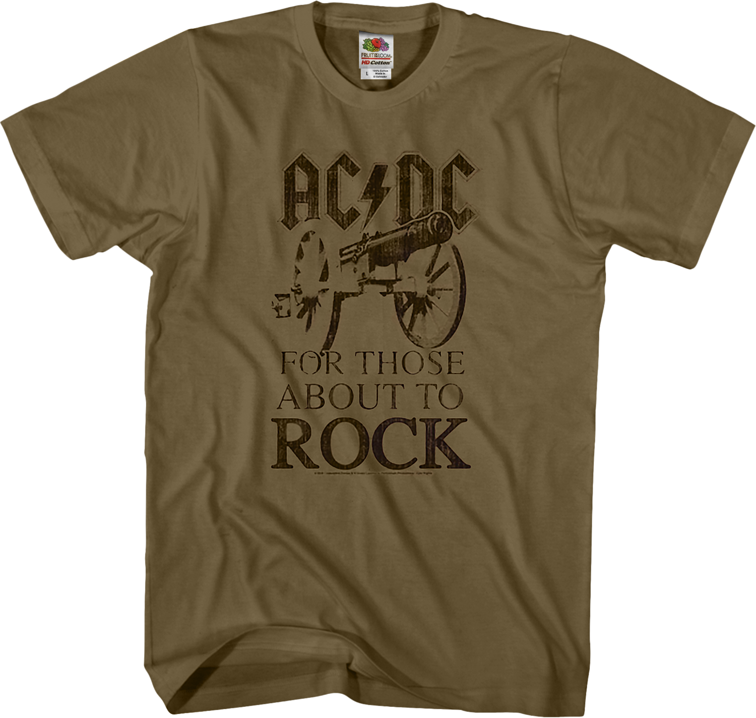 This AC/DC shirt features the cover artwork for the popular 1981 album For Those About To Rock. This is the hard rocking album that included the hits "Put The Finger On You", "Evil Walks" and "For Those About To Rock (We Salute You)". For Those About To Rock is considered by many to be AC/DC's greatest album. Show that you are a fan with this shirt. Roll each night to the guitar bite with this For Those About To Rock ACDC shirt.
