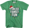 This 80stees.com exclusive t-shirt shows Christmas lights wrapped around the words "Forced Family Fun."