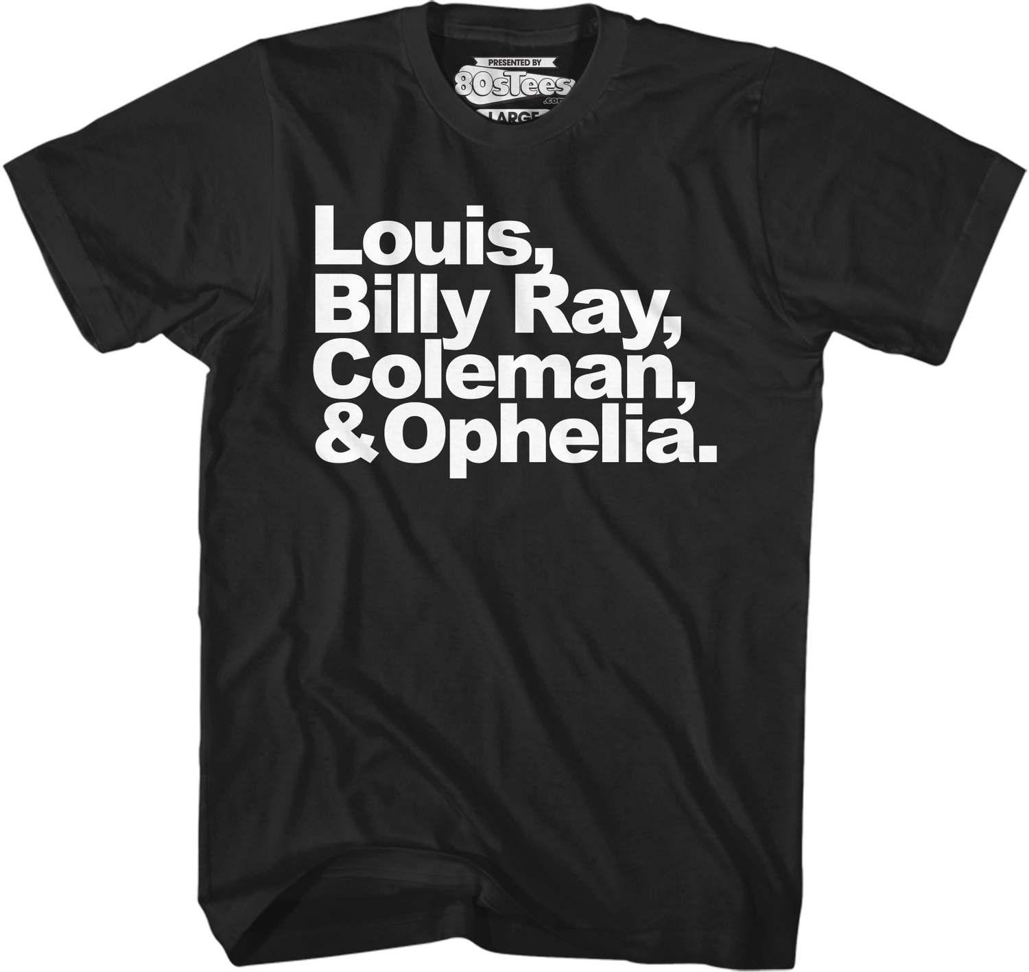 For any fan of the hilarious 1983 comedy starring Dan Aykroyd, Eddie Murphy, Denholm Elliott and Jamie Lee Curtis, this Four Names Trading Places t-shirt is a must have!