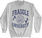This Fraggle Rock sweatshirt shows Boober, Gobo, Red, Wembley, and Mokey in a collegiate logo for Fraggle Rock University.