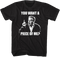Frank Costanza had a lot of outbursts in his appearances on Seinfeld. This Seinfeld t-shirt features one of Costanza's memorable moments. In the season eight episode titled "The Little Kicks", Frank Costanza gets into an argument with Elaine and ends it by aggressively asking, You Want A Piece Of Me? This is the perfect t-shirt for any fan of Seinfeld. You will have serenity on your side when wearing this Frank Costanza Seinfeld t-shirt.