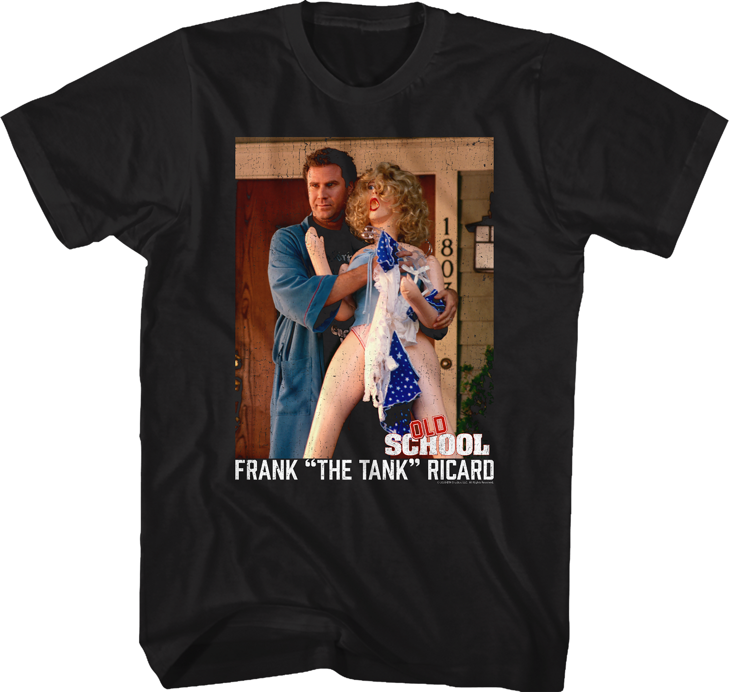 Everyone will immediately know that you are a fan of the hilarious 2003 classic starring Will Ferrell when you wear this Frank "The Tank" Ricard And Inflatable Doll Old School T-Shirt!